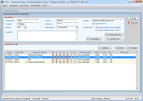 • Benutzer anlegen und intervallorientiert verwalten